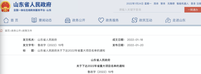 2022年1月20日,山东省人民政府网站发布了《关于下达2022年省重大项目名单的通知》(以下简称“《通知》”)。从《通知》中获悉,2022年省重大实施类项目名单共449项,其中涉及钢铁相关共6项;2022年省重大准备类项目名单共151项,其中涉及钢铁相关共4项,具体情况如下——