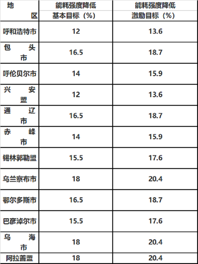 附件1“十四五”各盟市能耗强度降低目标