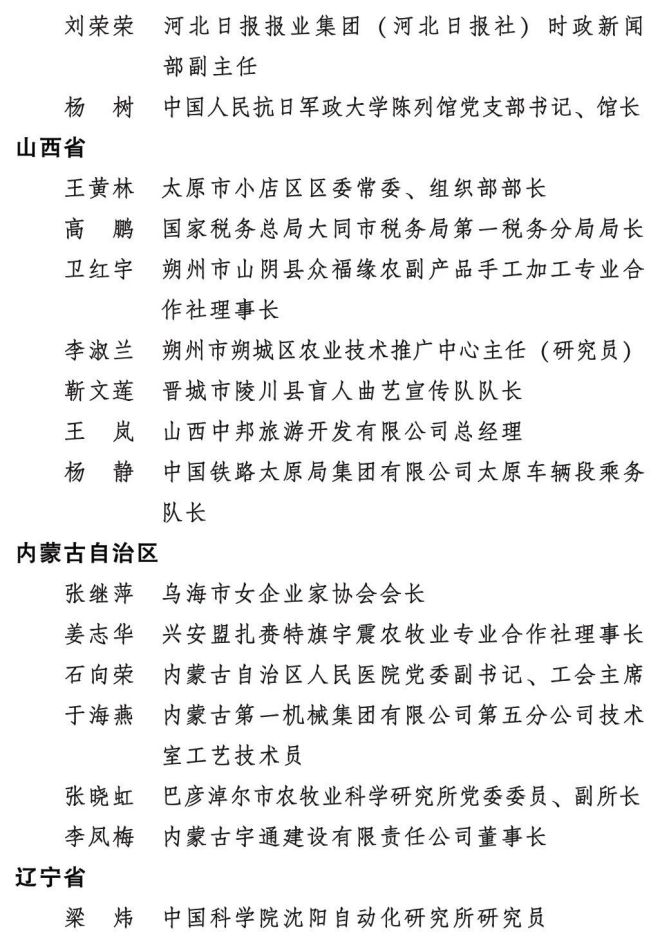 全国三八红旗手标兵名单