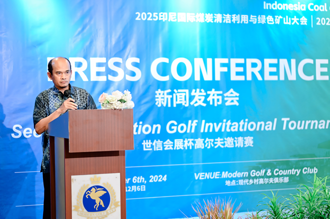 2024年12月6日,2025印尼国际煤炭及能源工业博览会暨印尼国际煤炭清洁利用与绿色矿山大会新闻发布会在印度尼西亚雅加达现代乡村高尔夫俱乐部举行。印尼能源与矿产资源部煤炭司煤炭下游工业处处长Muhammad Ansari,中国国家创新与发展战略研究会副秘书长曹炜,世信会展集团股份有限公司董事长曹林炳,印尼矿业服务协会公关关系部主任Ardhi Ishak,印中商务理事会常务副理事长许再山,出席新闻发布会并致辞,世信国际会展(印尼)有限公司董事长黄荣发布展会相关情况。新闻发布会由世信国际会展(印尼)有限公司高级合伙人戴世忠主持。