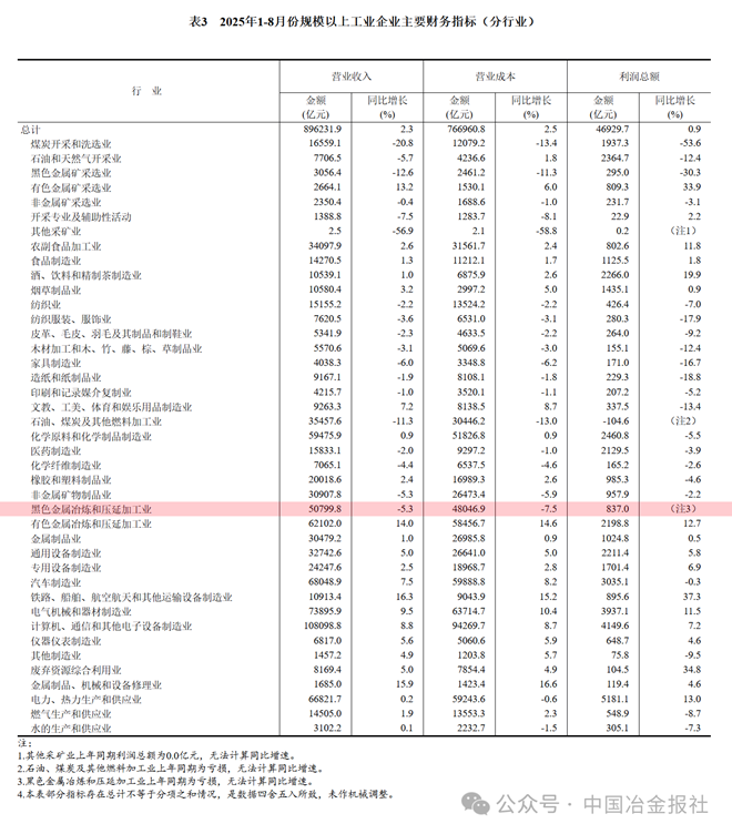 黑色金属冶炼和压延加工业1-8月份利润总额837亿元