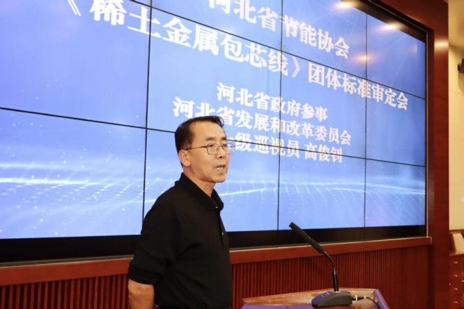 李玉民在致欢迎辞时表示,钢铁产业是河北支柱产业,也是工业高质量发展的主战场。今年初,河北省工信厅、省发改委联合出台《现代化钢铁产业重点工作清单》,明确“推进钢铁产品由原料级向材料级转型,加大稀土耐蚀钢推广力度,年内出台5项以上团体标准”。“稀土金属包芯线”作为稀土在钢铁领域应用的关键载体,其标准化建设将有效提升钢材质量,有效降低冶炼能耗和排放,有序规范市场秩序,鼓励技术创新应用,加快稀土金属包芯线在钢铁行业推广应用的步伐,对于助力钢铁及相关行业绿色低碳转型具有重要意义。他表示,河北省节能协会将持续发挥桥梁纽带作用,恳请专家全面审查标准、提出宝贵意见,推动标准更贴合产业需求。