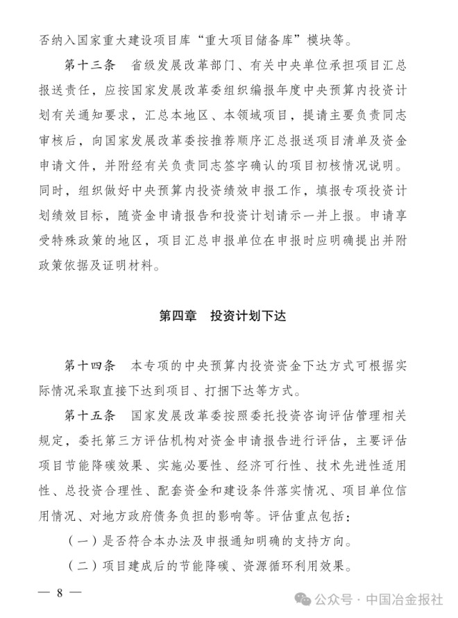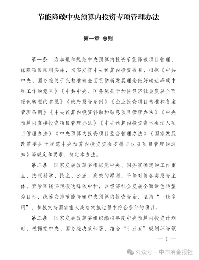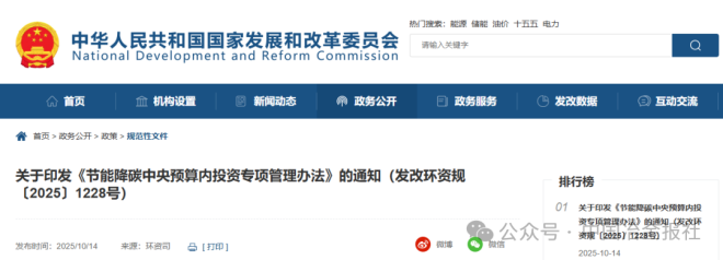 10月14日,国家发展改革委网站发布了关于印发《节能降碳中央预算内投资专项管理办法》的通知(以下简称《通知》)。