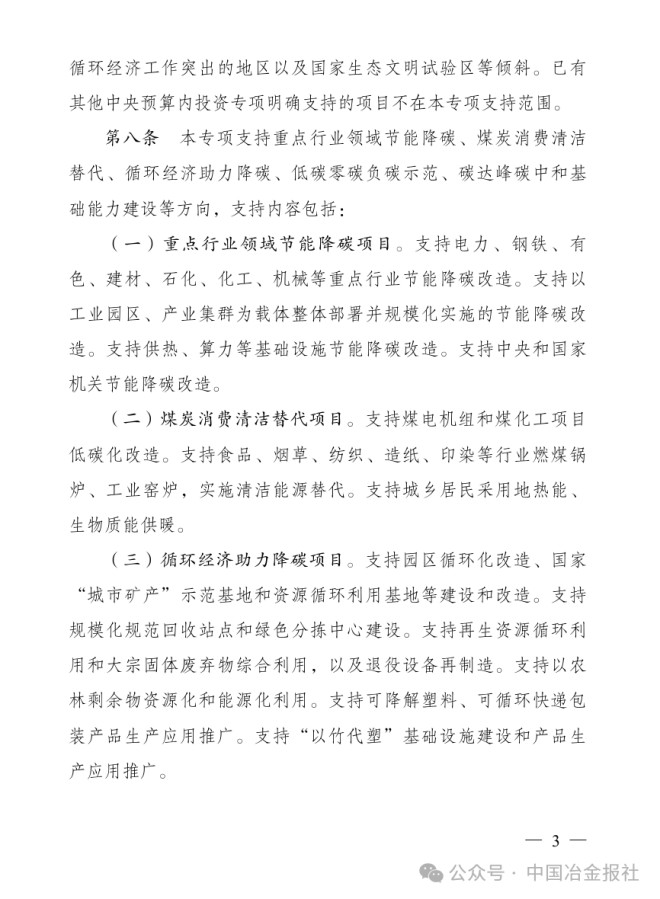 从《通知》中获悉,本专项支持电力、钢铁、有色、建材、石化、化工、机械等重点行业领域节能降碳、煤炭消费清洁替代、循环经济助力降碳、低碳零碳负碳示范、碳达峰碳中和基础能力建设等方向。