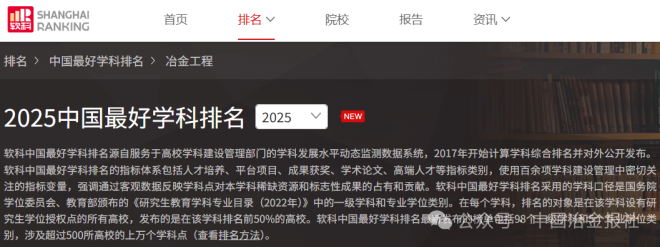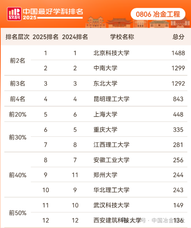 2025年冶金工程“最好学科”排名来了,看看你的母校排第几?