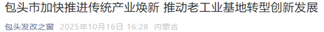 近日,包头发改之窗微信公众号发布《包头市加快推进传统产业焕新 推动老工业基地转型创新发展》一文。