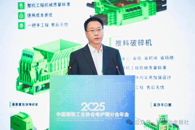 黄永建致辞表示,当前,我国电炉钢行业呈现出强大发展韧劲和蓬勃活力,部分指标已达到世界领先水平,如工业污染物排放较长流程降低75%,吨钢二氧化碳排放小于0.5吨,冶炼周期小于30分钟等。下一步,面对新形势新任务,电炉钢分会将一如既往发挥好桥梁纽带作用:一是深化电炉钢上下游产业链协同,推进资源保障体系建设,特别是废钢资源保障体系。二是加大绿色低碳、产品高质量等显著优势的宣传推广力度。三是进一步推广关键共性技术研发和成果转化。四是为电炉钢人才的培训培养搭建平台。五是加强对标交流,尽快推动中国电炉钢工艺技术达到更高水平,实现全球盈利。