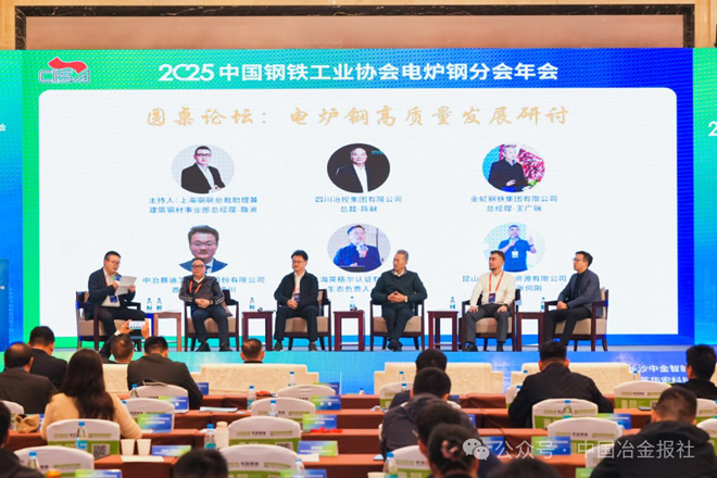 会议举行了以“电炉钢高质量发展研讨”为主题的圆桌论坛。上海钢联总裁助理兼建筑钢材事业部总经理魏波主持论坛,四川冶控集团有限公司总裁陈献、金虹钢铁集团有限公司总经理王广瑞、中冶赛迪工程技术股份有限公司首席专家张豫川、上海英格尔认证有限公司生态负责人常敏、昆山一昕再生资源有限公司总经理张何刚,围绕生产经营、数字化赋能、反向开票等热点内容展开讨论。大家一致认为,电炉钢企业发展面临多重压力与挑战,行业企业要加强合作、群策群力、互相学习,共同推进行业健康高质量发展。