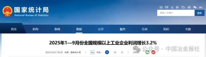 10月27日,从国家统计局网站获悉,1-9月份,全国规模以上工业企业实现利润总额53732.0亿元,同比增长3.2%。