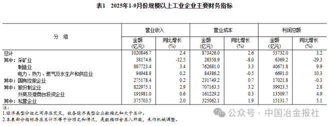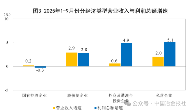 1-9月份,规模以上工业企业中,国有控股企业实现利润总额17021.8亿元,同比下降0.3%;股份制企业实现利润总额39923.5亿元,增长2.8%;外商及港澳台投资企业实现利润总额13509.7亿元,增长4.9%;私营企业实现利润总额15131.7亿元,增长5.1%。