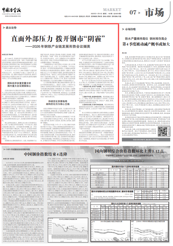 10月30日—11月1日,2026年钢铁产业链发展形势会议召开。来自钢铁产业链上下游的专家、企业代表齐聚一堂,围绕当前国内外经贸形势、钢材市场基本面运行趋势及2026年行业潜在机遇等话题展开研讨,为行业发展建言献策。