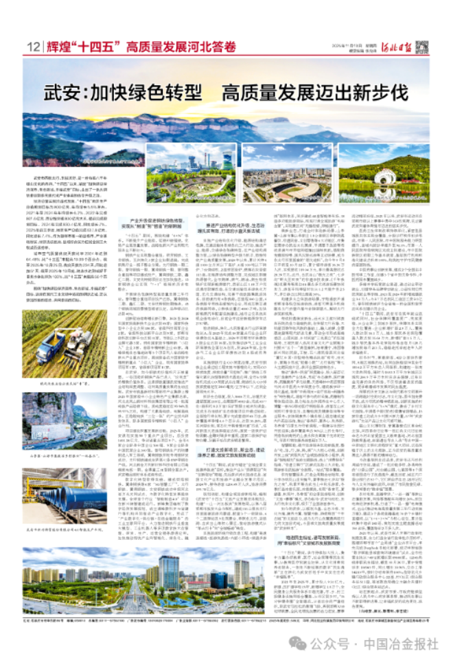 11月14日,河北日报发布《武安:加快绿色转型 高质量发展迈出新步伐》一文。