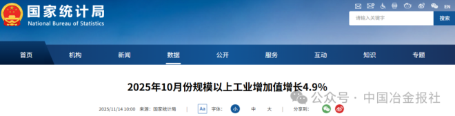 据国家统计局官网近日发布,2025年10月我国粗钢产量7200万吨,同比下降12.1%;生铁产量6555万吨,同比下降7.9%;钢材产量11864万吨,同比下降0.9%。