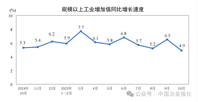 10月份,规模以上工业增加值同比实际增长4.9%(增加值增速均为扣除价格因素的实际增长率)。从环比看,10月份,规模以上工业增加值比上月增长0.17%。1—10月份,规模以上工业增加值同比增长6.1%。