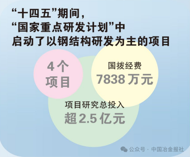 综上,“十四五”期间,高强钢品种不断迭代升级,应用愈加广泛,凸显钢结构绿色化、轻量化、高性能化发展趋势。