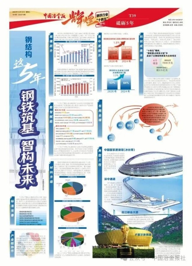 “十四五”期间,住建部会同有关部门制定或修订超200项标准,覆盖钢结构全生命周期,统一构件尺寸,指导标准化设计,推动产业链协同发展,并组织联合攻关,研发高效能钢结构体系,破解技术瓶颈,促进技术标准与规范体系完善,有力支撑钢结构建筑规模化发展。