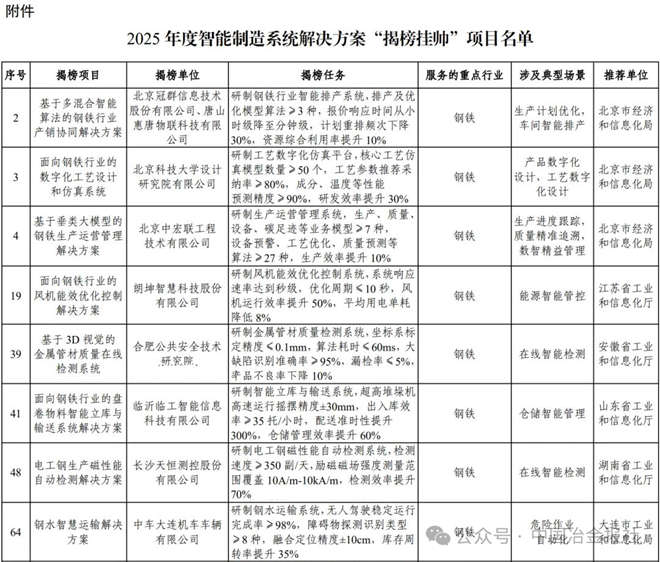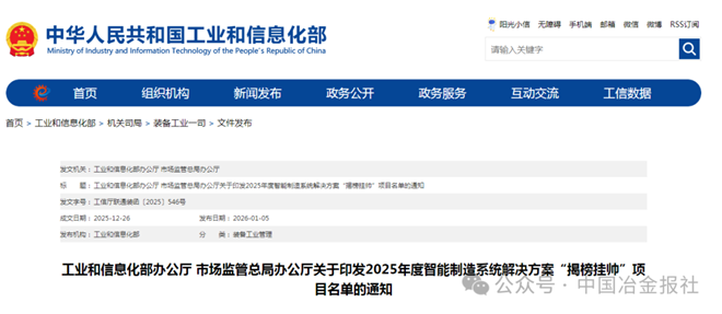 2026年1月5日,工业和信息化部发布通知,公布了2025年度智能制造系统解决方案“揭榜挂帅”项目名单。