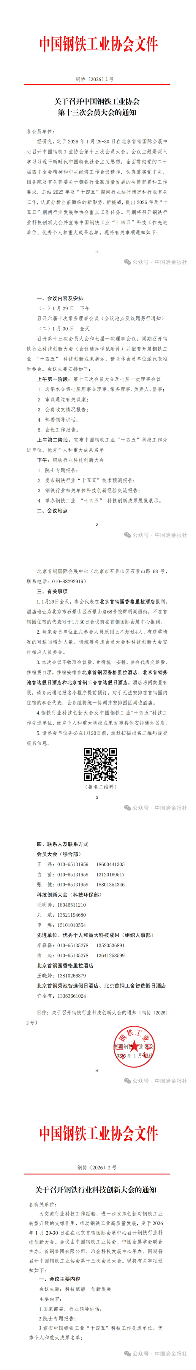 关于召开中国钢铁工业协会第十三次会员大会的通知