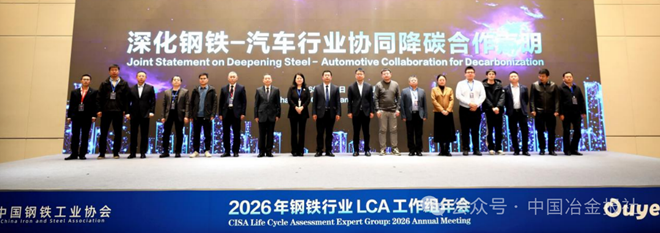 1月15日,在上海举办的2026年钢铁行业LCA工作组年会上,《深化钢铁—汽车行业协同降碳合作声明》(下称《合作声明》)正式发布。本声明由中国钢铁工业协会、中国汽车技术研究中心(中汽碳)与落基山研究所共同召集,旨在推动钢铁与汽车产业链协同减排,加快低碳排放钢在汽车行业的规模化应用,助力我国制造业绿色低碳高质量发展。
