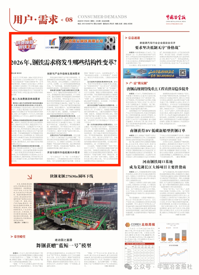 统一大市场建设释放内部需求潜力。该年会提出“综合整治内卷式竞争”“规范涉企执法行为”,将打破区域市场壁垒,推动钢材资源高效配置。钢结构在建筑、交通领域的应用加速推进,预计2026年钢结构用钢量增长12%,其中桥梁用耐候钢、建筑用抗震钢需求尤为突出。同时,地方自主空间扩大后,各地结合特色产业布局的钢材需求中心正在形成,如西南地区聚焦水电装备用钢,东北地区强化管线钢供应,进一步丰富需求层次。