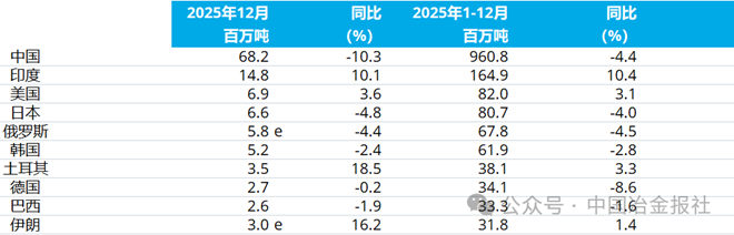 2025年12月全球粗钢产量
