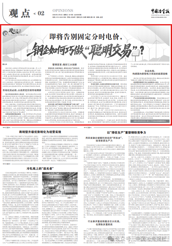 未来的钢铁企业,不仅是钢铁产品的制造商,还将是电力市场的精明交易者、能源系统的灵活调节者和绿色电力的创新消费者。在电力市场化改革的浪潮中,唯有创新者才能勇立潮头,将挑战转化为机遇。(董立杰)