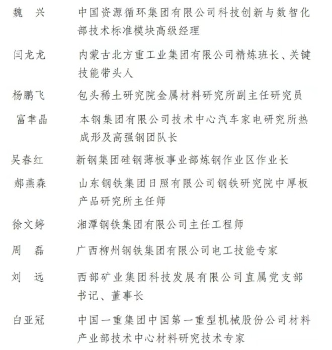 其中,钢铁冶金相关行业共有16人入围,具体情况如下——