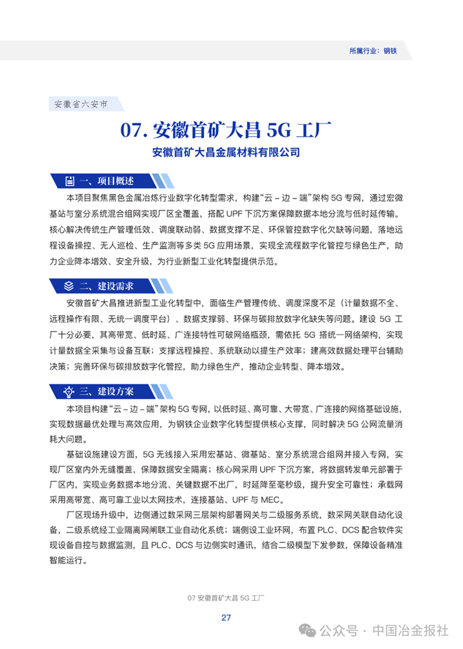 其中,多个钢铁5G工厂入选!详情整理如下: