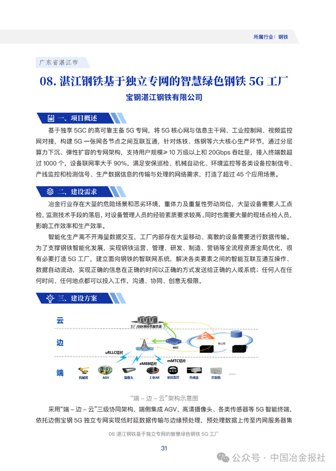 · 湛江钢铁基于独立专网的智慧绿色钢铁5G工厂