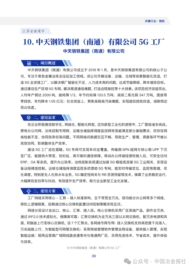 · 中天钢铁集团(南通)有限公司5G工厂