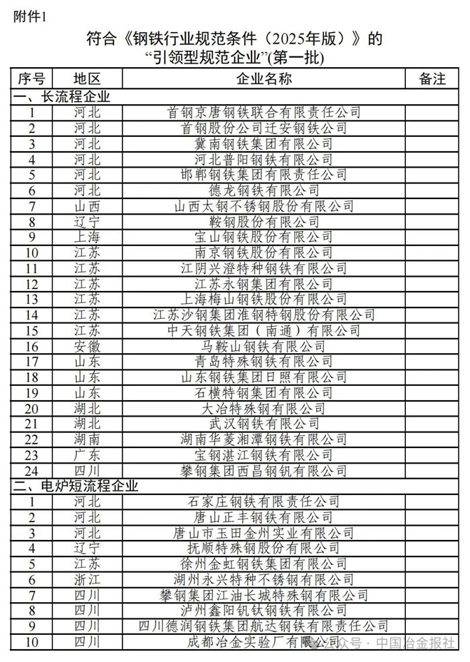 1.符合《钢铁行业规范条件(2025年版)》的“引领型规范企业”(第一批)