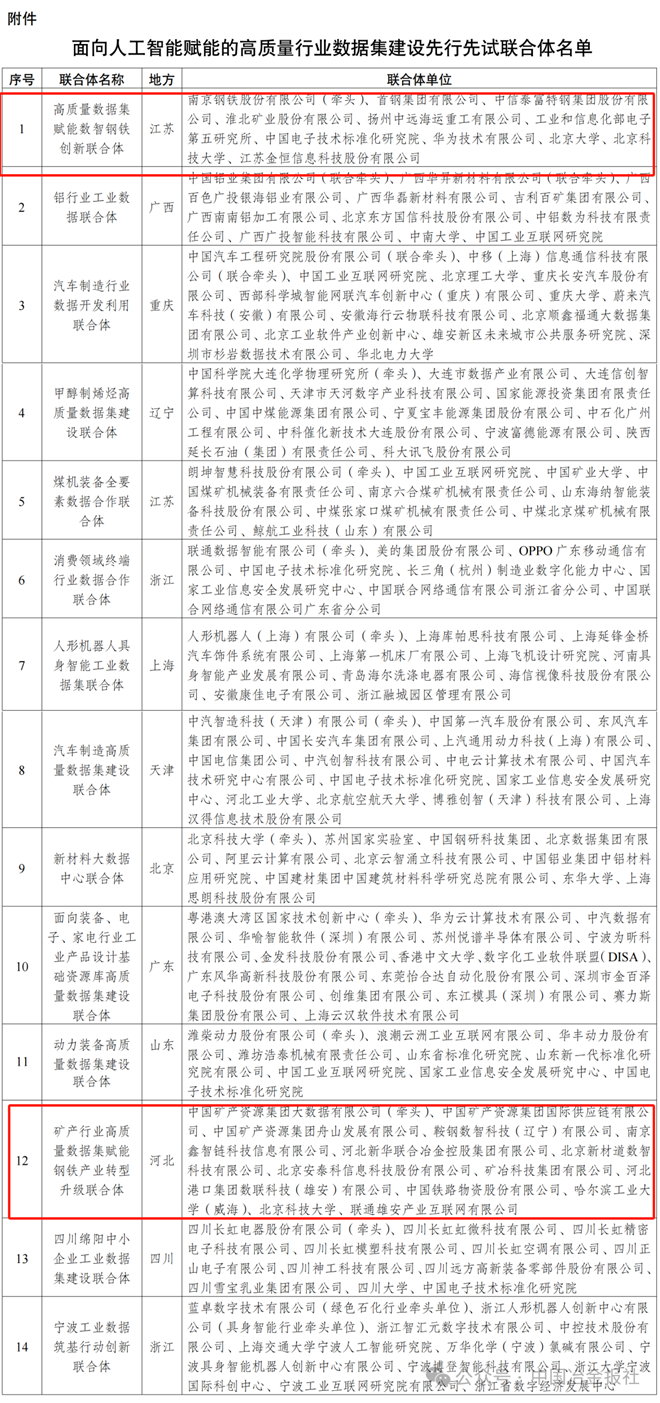 工业和信息化部14个高质量行业数据集联合体中,有这些钢企