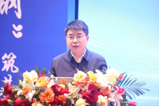 王向东在致辞中介绍,山钢莱钢在钢结构建筑领域起步早、发展快、绩效多,拥有多个全国之最和第一。今年,莱钢落实山钢“四大战役”决策部署,实施百亿元投资、千亿元产值、万人就业的“百千万”工程,打造“四大工业园区”,全面激活莱钢。其中,致力于建成全国最专业的数智化绿色钢结构建筑产业园示范区——绿色钢构建筑产业园的建设就是其中内容之一。