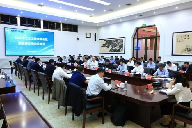为充分发挥跨部门沟通协商工作机制作用,4月28日,中国钢铁工业协会在京组织召开2025年五方工作会商会议暨轮值会长办公会议,国家有关部委司局领导、各轮值会长单位主要负责人以及协会驻会领导参加会议。会议由钢协会长,首钢集团党委书记、董事长赵民革主持,钢协党委书记、执行会长何文波做总结讲话。