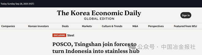 《The Korea Economic Daily》9月26日报道,韩国钢铁巨头浦项制铁(POSCO)将与中国青山控股集团(Tsingshan Holding Group)在印尼共同建设一座不锈钢厂。这一举措意味着浦项制铁正将不锈钢生产重心从中国转向需求快速增长的东南亚市场。