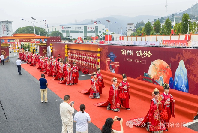 ▲9月28日,在国庆节、中秋节来临之际,中信泰富特钢集团旗下大冶特殊钢有限公司举办职工集体中式婚礼(如图)。30对新人在同事和好友的见证下喜结良缘。此次集体中式婚礼,旨在弘扬传统文化,倡导文明婚庆新风尚。(特约通讯员 朱友松 摄)