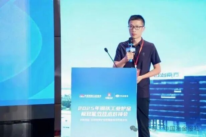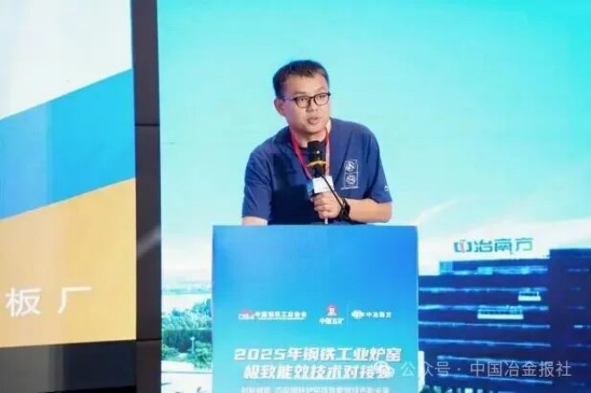 图为北京首钢国际工程技术有限公司陈迪安作题为《轧钢加热炉综合节能减排与质量提升耦合技术研究与应用实践》报告