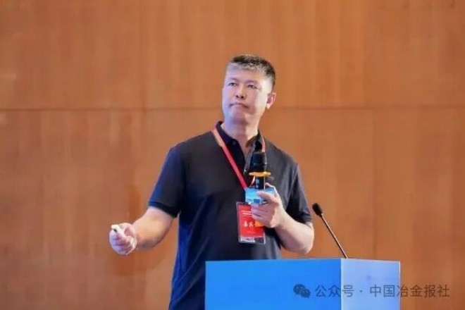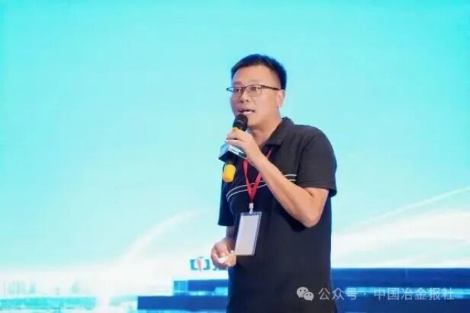 图为湖南涟钢工程技术有限公司冯文斌作题为《极致能效在涟钢硅钢的应用》报告