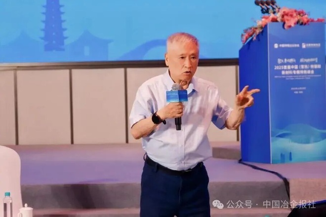 翁宇庆作题为《特钢持续向“特、高、新”发展》的特邀报告,简述特钢概念及历史,介绍了“先进钢铁材料”与特钢的融合发展过程,并分析了特钢未来发展的几个方向,他指出要加快发展绿色制造和智能制造(数字经济及“AI+材料”),发展材料基因工程,采用“AI+材料”研究手段发展特钢。