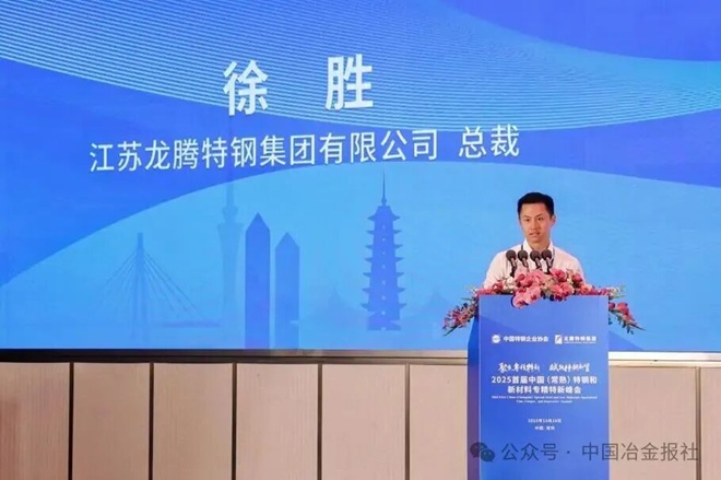 江苏龙腾特钢集团有限公司总裁徐胜作题为《从专精特新到国际竞争力:龙腾特钢打造行业隐形冠军的实践》报告,分享了三点经验,一是保持战略定力,专精特新需要长期主义,唯有深耕细分领域,才能在行业调整期站稳脚跟。二是能力转化:构建从研发突破、产品领先、标准制定到品牌价值的转化链,研发突破形成产品优势,产品领先推动标准制定,标准话语权铸就品牌价值。三是生态协同,政企研发“同频共振”。“发展过程中,我们受益于三大支撑:政策支撑、行业引导、产学研协同。”徐胜分享道。