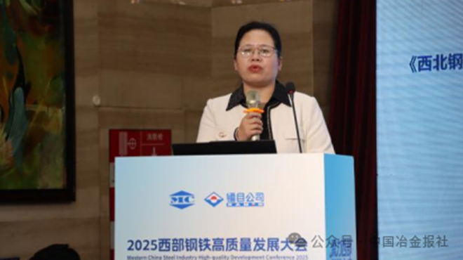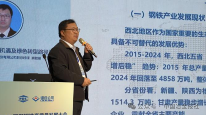 酒钢宏兴副总经理窦敏瑞做《区域钢铁产业发展机遇及绿色转型路径》主旨演讲