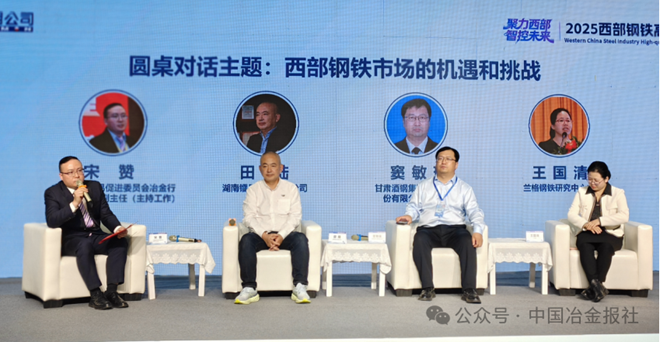 会议进行了一场以“西部钢铁市场的机遇和挑战”为主题的圆桌对话。田陆、窦敏瑞、王国清参与讨论,大家一致认为,西部钢企发展既有机遇又有挑战,但机遇大于挑战,应积极服务国家战略,融入区域发展,找到自身赛道。