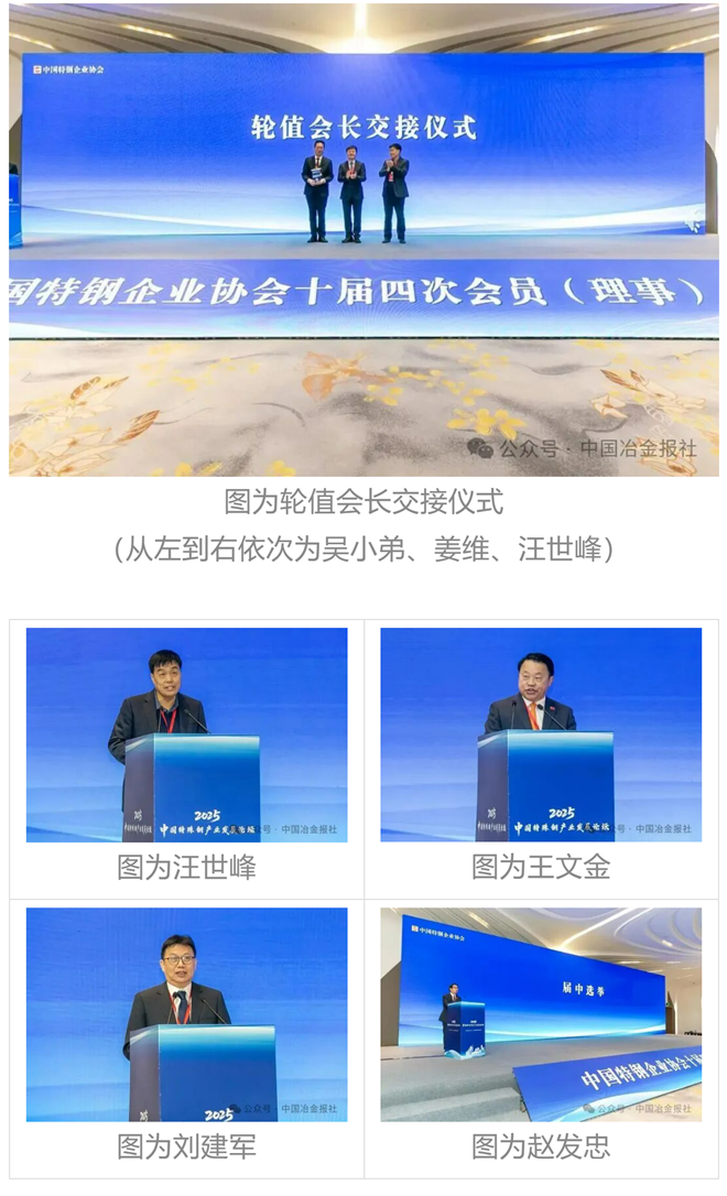 11月12日,中国特钢企业协会十届四次会员(理事)大会在江苏南京召开。中国钢铁工业协会党委副书记、副会长兼秘书长姜维在会上宣读中央社会工作部下发的《关于中国特钢企业协会负责人人选审核结果的通知》,太钢集团党委书记、董事长吴小弟当选为特钢协会长。