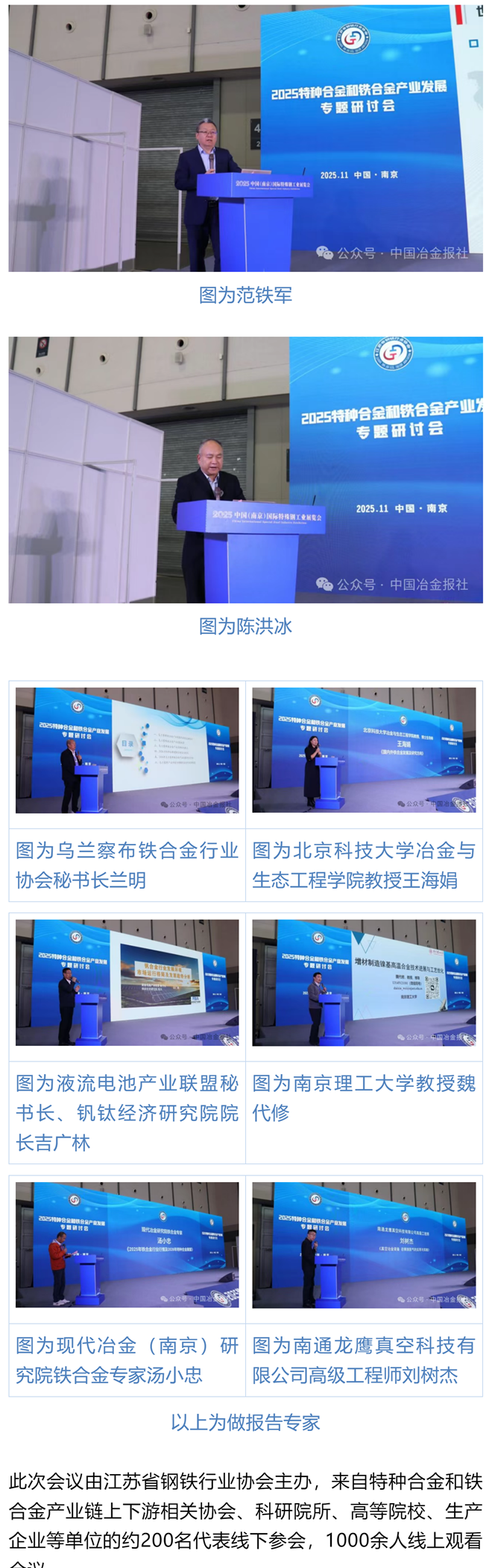 11月13日,2025特种合金和铁合金产业发展专题研讨会在江苏南京召开。