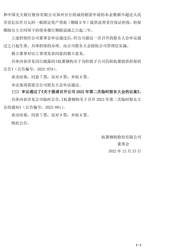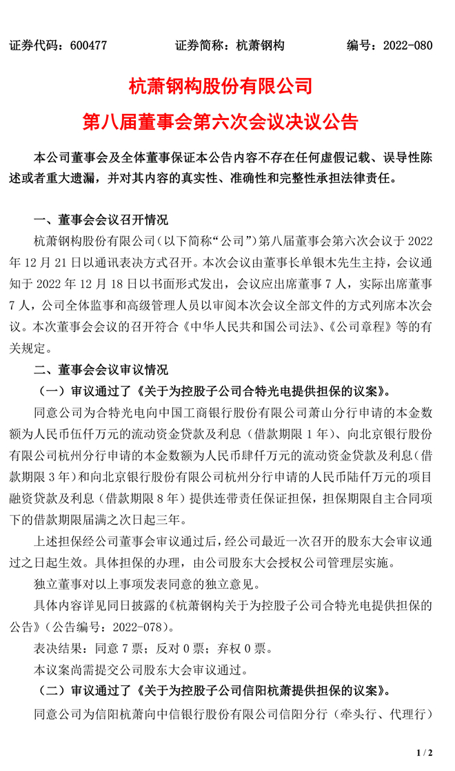 杭萧钢构:杭萧钢构第八届董事会第六次会议决议公告