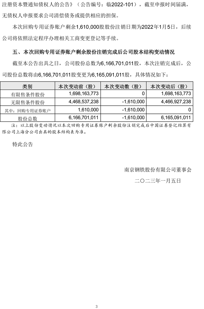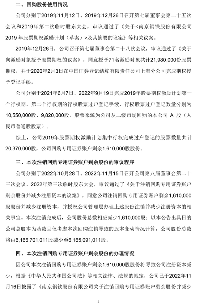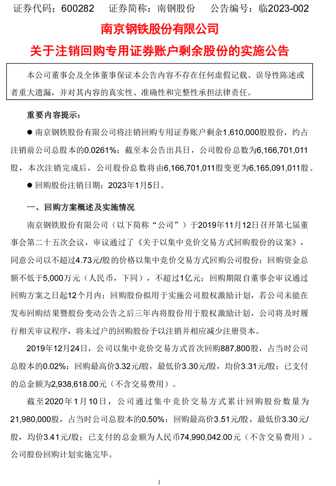 南钢股份:南京钢铁股份有限公司关于注销回购专用证券账户剩余股份的实施公告