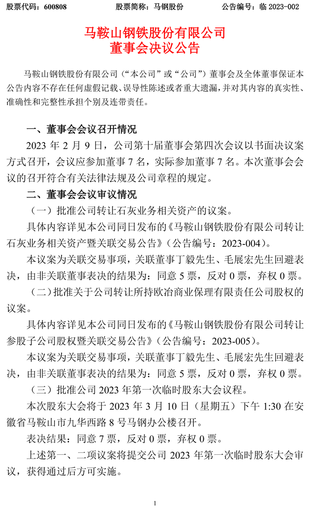 马钢股份:马鞍山钢铁股份有限公司董事会决议公告