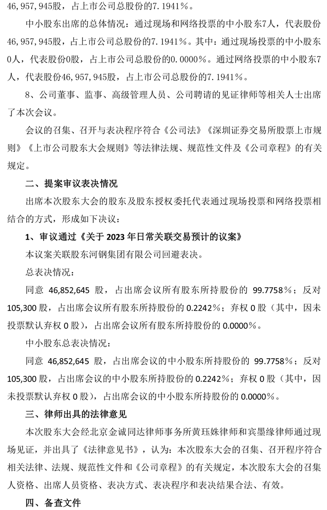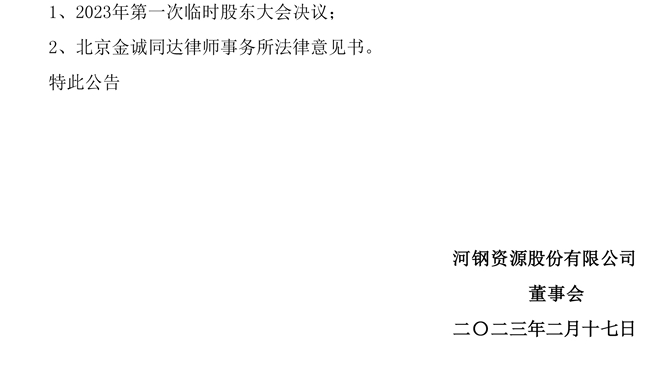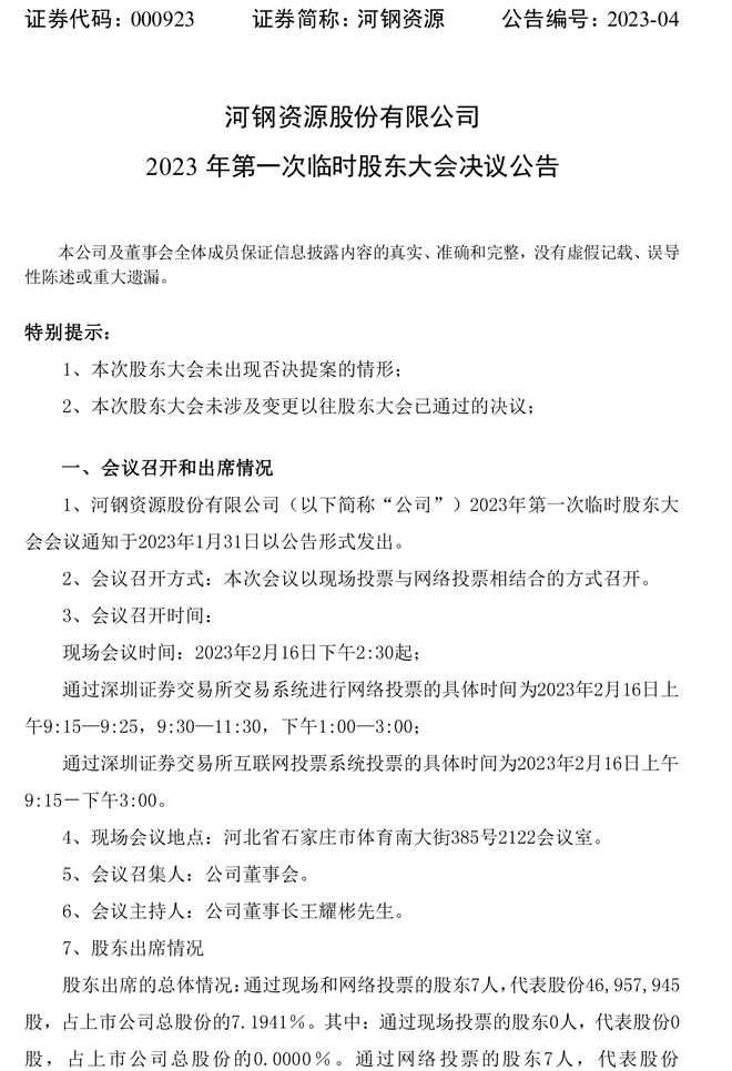 河钢资源:河钢资源2023年第一次临时股东大会决议公告
