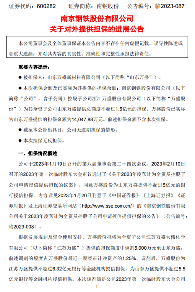 南钢股份:南京钢铁股份有限公司关于对外提供担保的进展公告