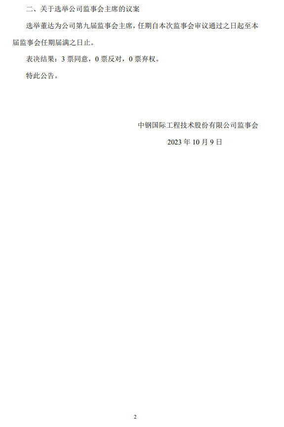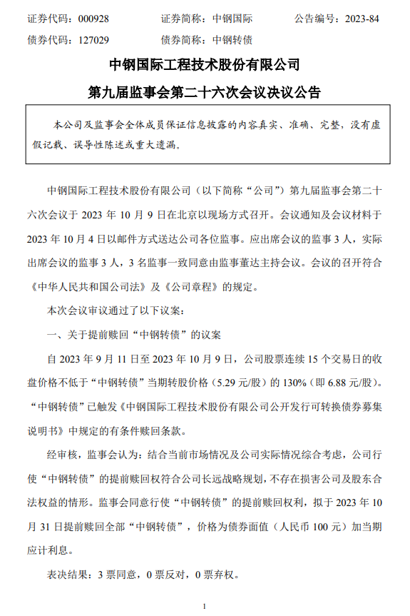 中钢国际:第九届监事会第二十六次会议决议公告